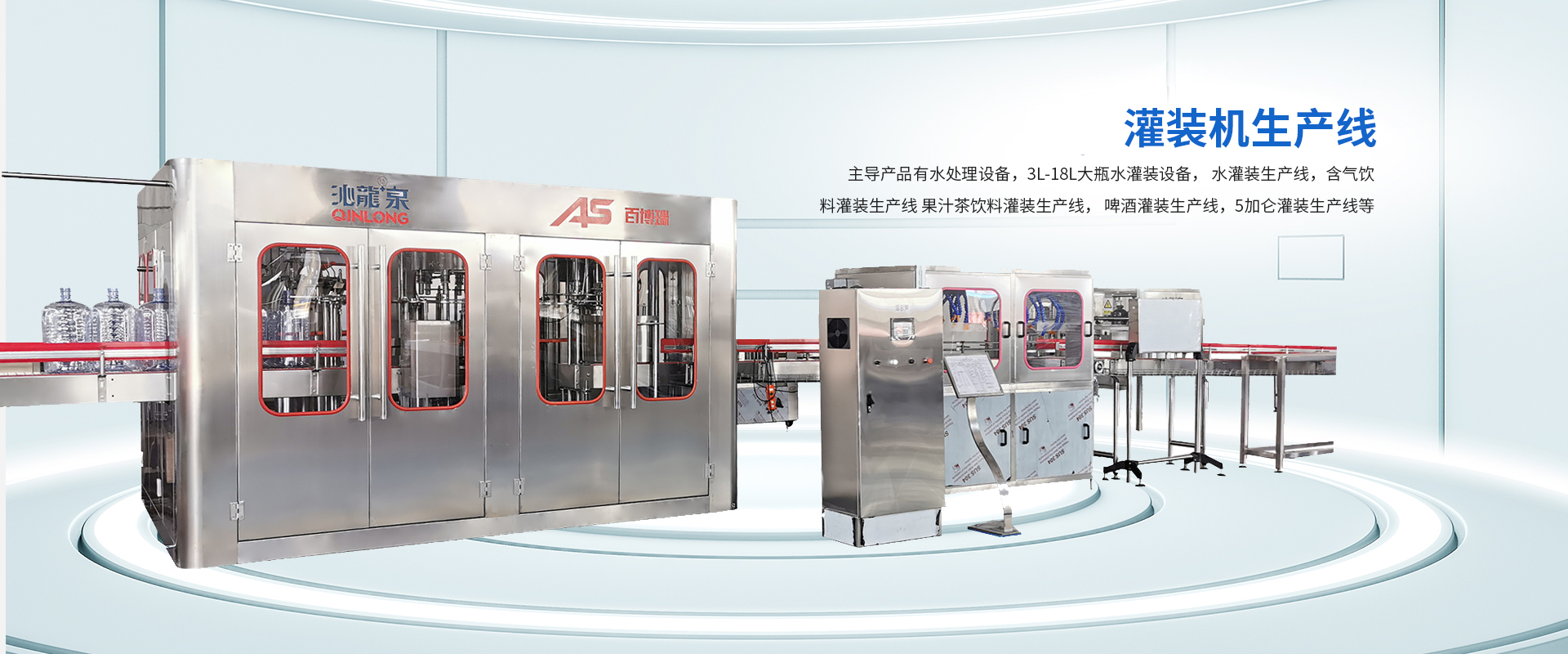 公司主導(dǎo)產(chǎn)品有水處理設(shè)備,3L-18L大瓶水灌裝機設(shè)備, 水灌裝生產(chǎn)線,含氣飲料灌裝生產(chǎn)線, 果汁茶飲料灌裝生產(chǎn)線, 啤酒灌裝生產(chǎn)線,5加侖灌裝生產(chǎn)線等。